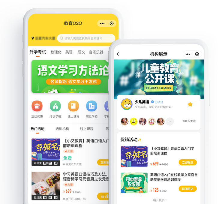 线下培训机构、招生营销活动、线上课程、付费内容,为学生和家长提供优质、实惠的教育机构和课程